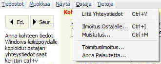 - napin painalluksella sähköpostiviesti voittaneelle asiakkaalle maksutavasta sekä toimitusehdoista jne.