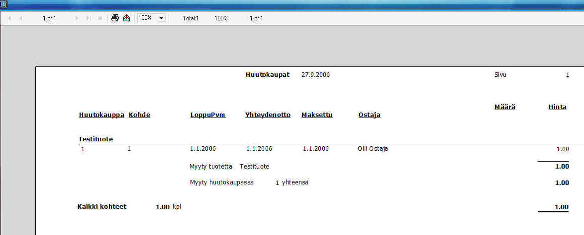 - raportti tehdyistä kaupoista (Crystal Reports - siirrettävissä esim. Excel-muotoon)