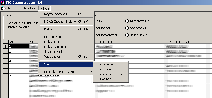 SIO RekisteriNäppärä ja helposti opittava jäsenrekisteriohjelma.Siinä on riittävät toiminnot yhdistyksen, taloyhtiön ja erilaisten seurojen, yhteisöjen se toimii mainiosti myös esim. yrityksen asiakasrekisterinä. Sen avulla on helppo ylläpitää yhteyslistoja, tulostaa tarroja ja kirjepohjia. Ohjelma tukee viitepankkisiirtoa. Viitenumero lasketaan jäsennumeron perusteella. |